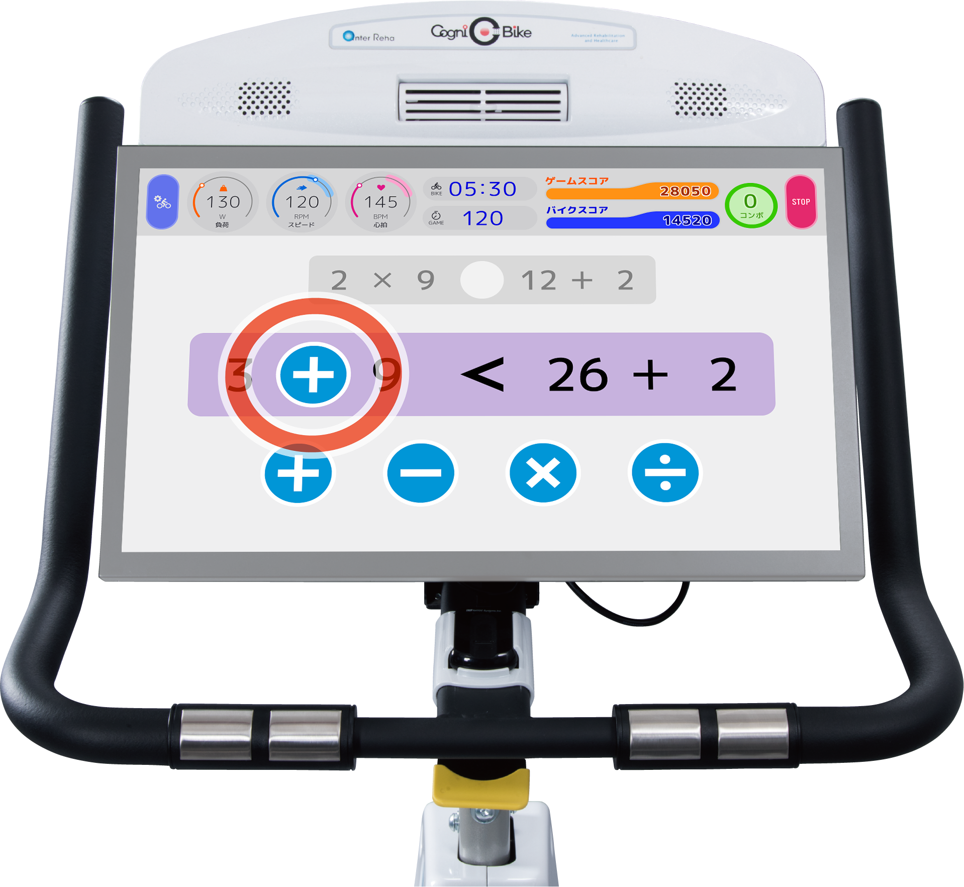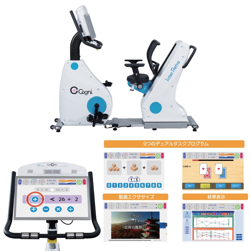 「コグニバイク」は、運動と認知課題を同時に行う「デュアルタスク」を取り入れたトレーニングエルゴメーターです。