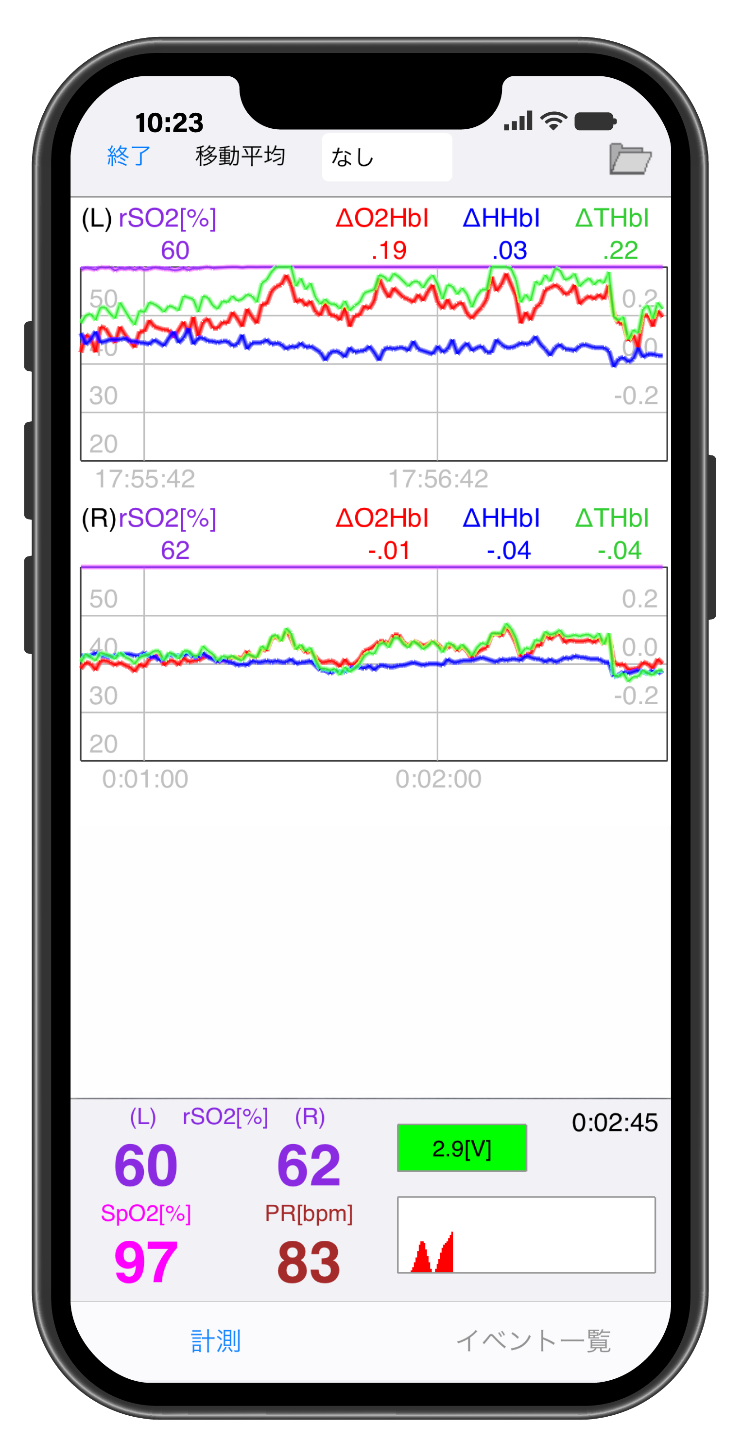 アプリでは、各項目の測定値がリアルタイムで表示されます。