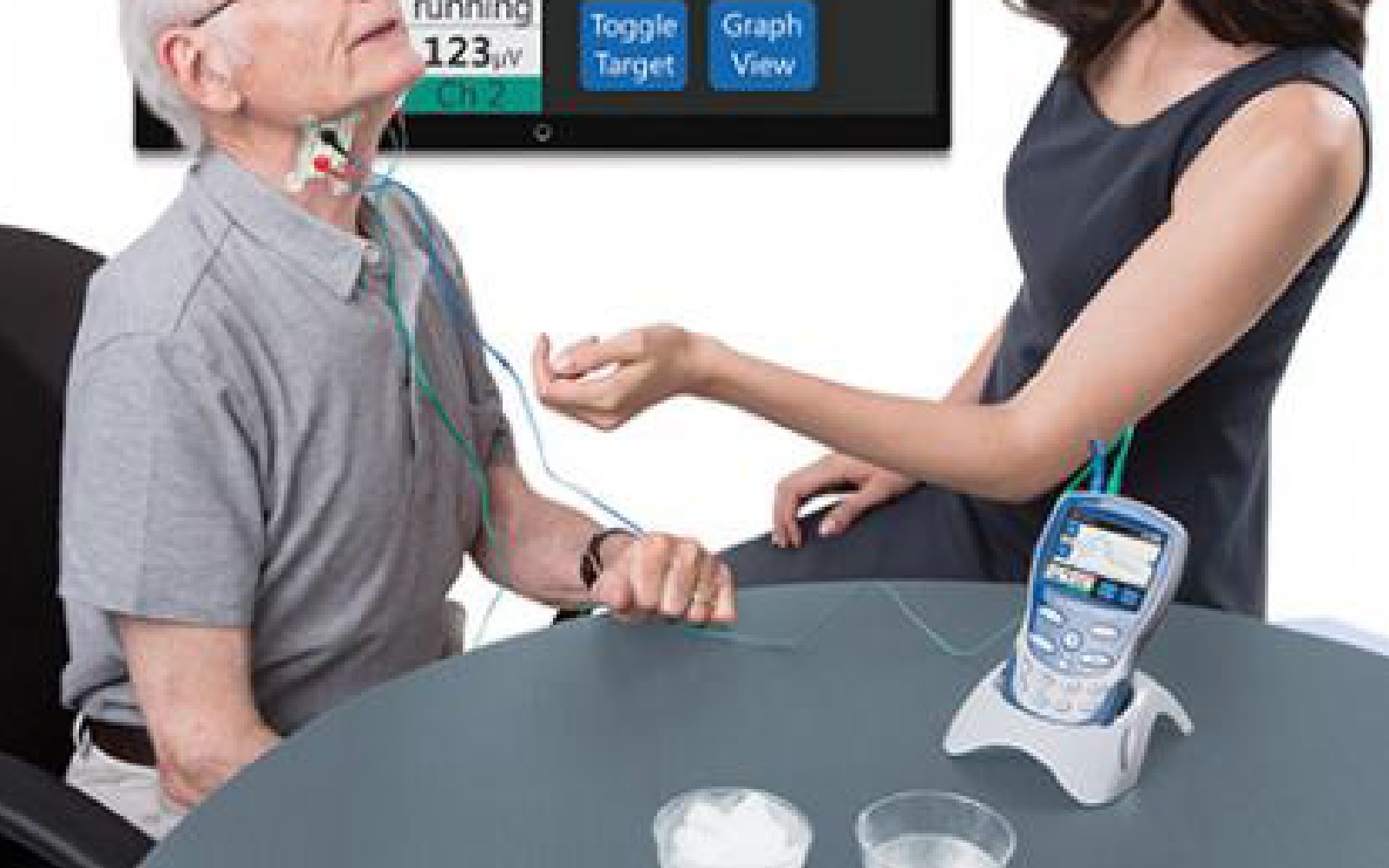 嚥下関連筋への電気刺激と表面筋電図の記録に対応した機器です。