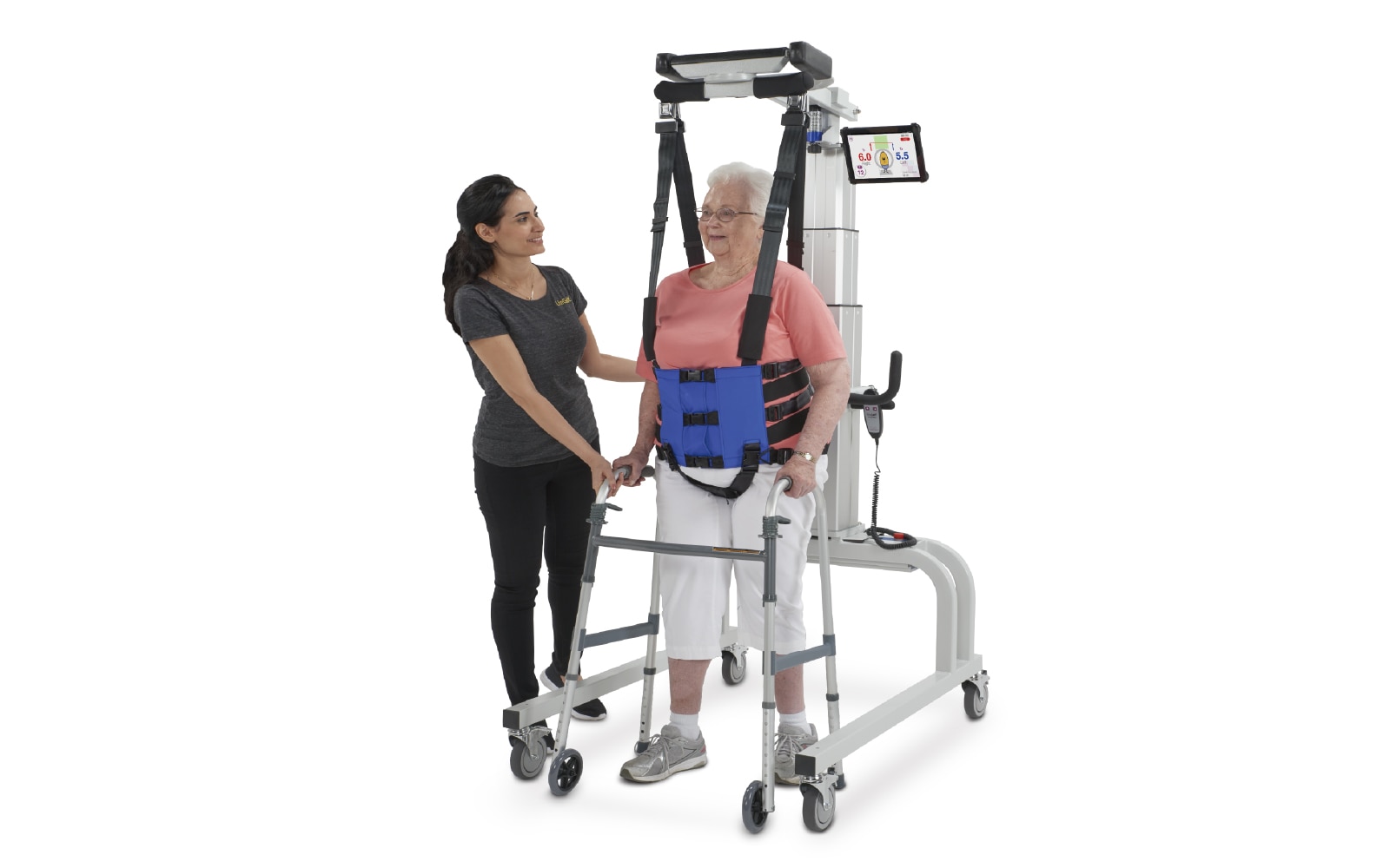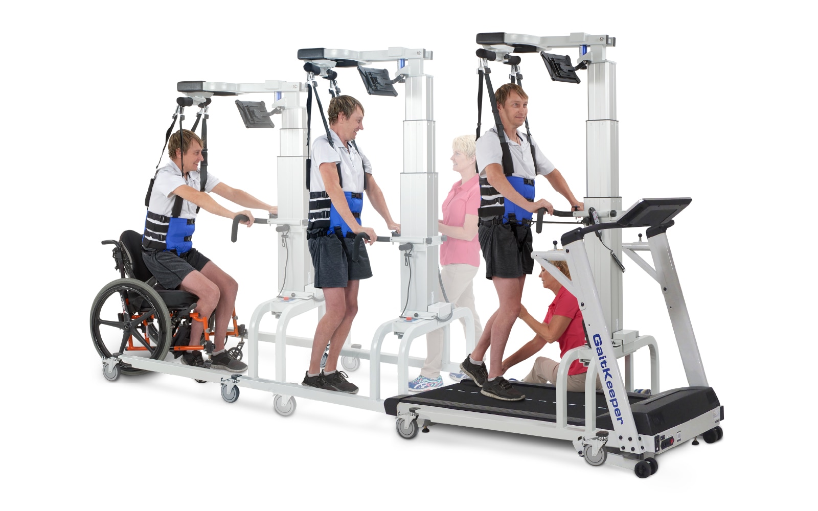 上下・左右・前後の動きを確保しながら歩行練習を行うためのシステムです。