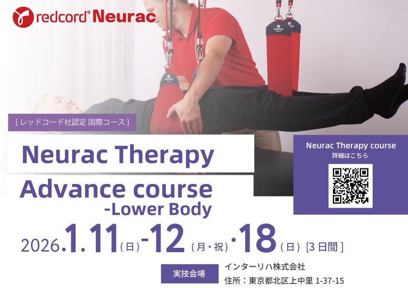 Advanceコース実技内容の | Neuracテスト(評価) 体幹機能を中心に、局所的な運動制御や筋膜連鎖に関わる機能的弱点(ウィークリンク)を明らかにするための評価手法を学習します。全身を連動的に捉えたNeurac特有のテスト戦略を用いて、臨床での評価精度を高めます。 Perform Plusテクニックの習得 Neuracメソッドに特化したPerform Plus(パフォームプラス)評価テクニックを通じて、より細かい動作分析とターゲット部位の特定を行い、再現性の高い実践的な評価アプローチを身につけます。 Neurac治療アプローチの実践 体幹-下肢・上肢・頚部といった各身体部位に対して、クリニカルリーズニングに基づき、患者の個々の機能レベルに合わせた「神経‐筋伝達機能の活性化:Neurac治療戦略」を実践形式で習得します。レッドコードを活用したアプローチにより、各症例に応じた最適な介入が可能となる技術を身につけます。 |