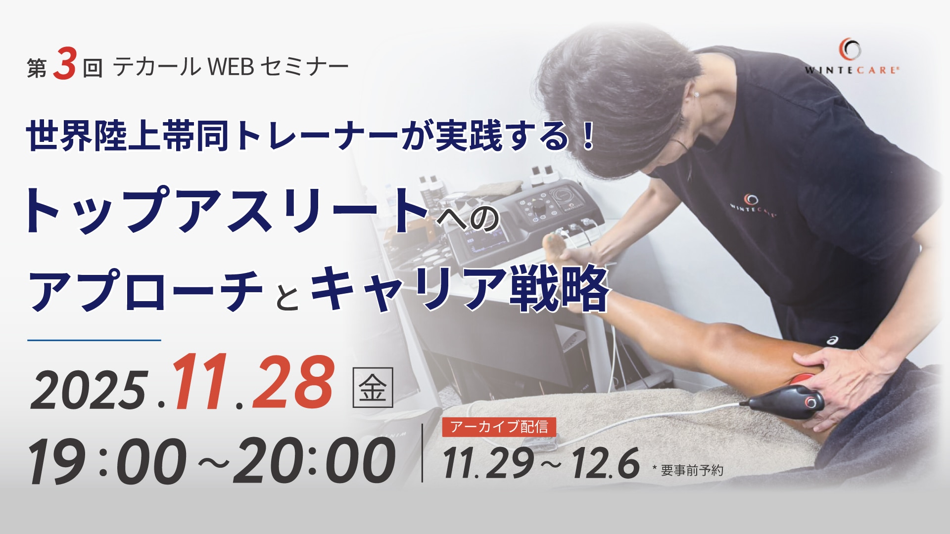 講義内容 | 第一線で活躍し続けるトップトレーナーは、何を考え、どのような武器を選択するのか。本ウェビナーでは、世界陸上帯同という華々しい経歴を持つお二人の講師から、そのキャリア哲学と、結果を出すために選び抜かれた最新治療機器「T-PLUS」の具体的な臨床応用例を直接学ぶことができます。 |