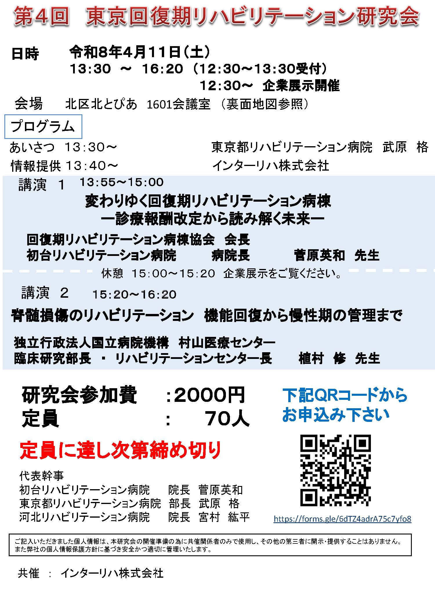主催 | 東京回復期リハビリテーション研究会 東京都リハビリテーション病院部長武原格 河北リハビリテーション病院院長宮村紘平 |