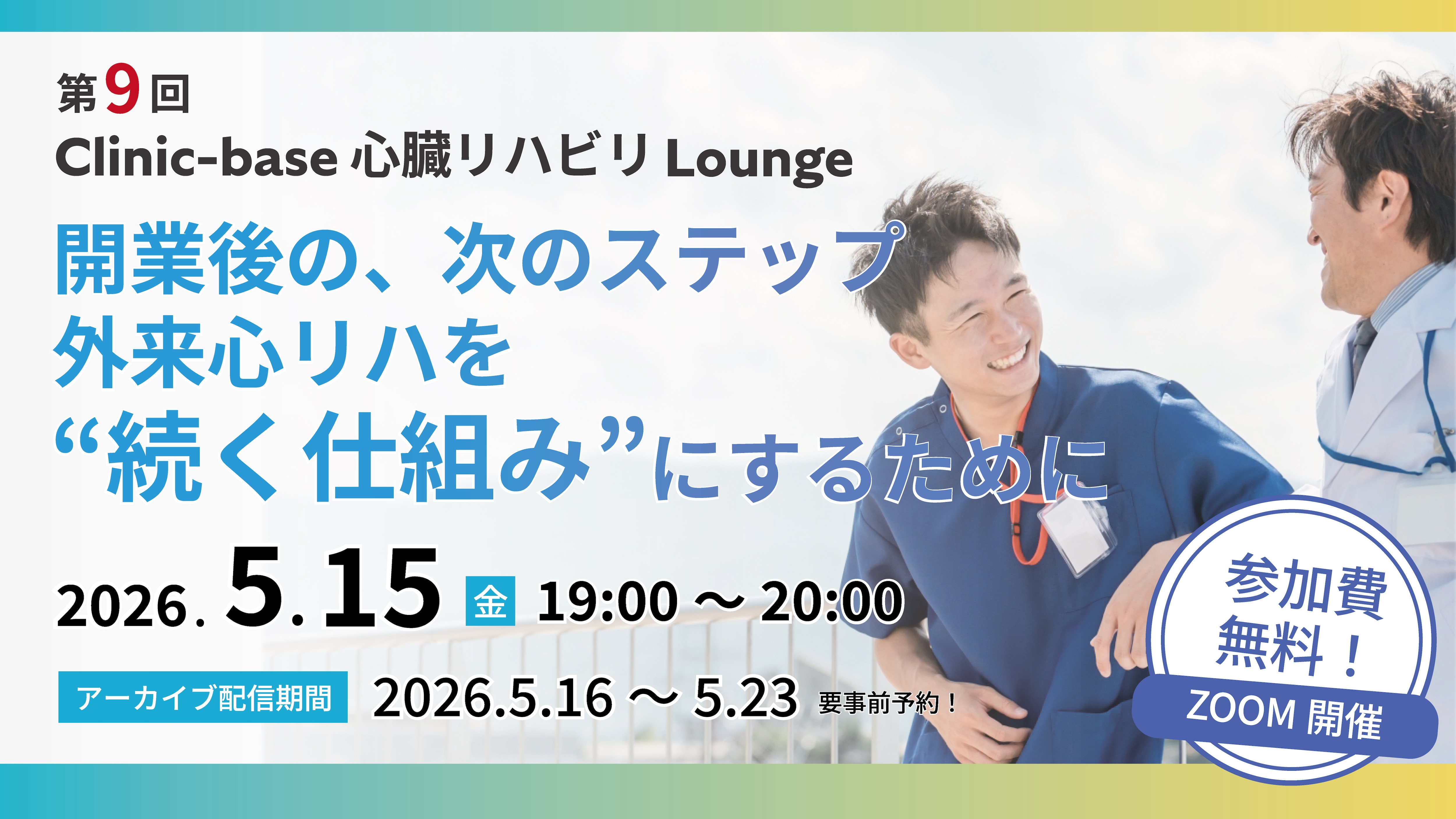 セミナー概要 | 本企画は「Clinic-base 心臓リハビリ Lounge」と題し、地域に根差した心臓リハビリテーションの取り組みや工夫、現場のリアルな声を全国の先生方からお届けする企画です。 今回は、札幌市北区「あさぶハート・内科クリニック」院長であり、2023年には分院「あさぶハート・心リハクリニック」を開院された福島 新(ふくしま あらた)先生にご登壇いただきます。 福島先生は北海道大学医学部卒業後、道内の医療機関で循環器診療に従事され、北海道大学大学院で医学博士を取得。 現在は地域に根差した循環器医療を実践される中で、外来心臓リハビリテーションの取り組みも積極的に展開されています。 当日は、こうしたご経験をもとに、外来心臓リハビリテーションを開業後どのように安定して運営し、継続していく仕組みを作るのか、現場でのリアルな課題や工夫についてお話しいただく予定です。 学会や講演会では聞くことのできない実践的な体験談も交えながら、参加者の皆さまとの意見交換も行ってまいります。 心臓リハビリテーションの新規開設・開業を検討されている先生方はもちろん、すでに外来心リハに取り組まれている医療従事者の方々にとっても、日々の臨床や運営に役立つヒントが得られる機会となるはずです。ぜひお気軽にご参加ください。 |